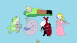 例えば、パパをライオンのタマちゃんが、鍛えるために谷底に落とすスタンプがあります。『出直して来い』とか『一昨日来やがれ』って字をいれるのですが、原画に手を加えてあります。こんな感じ。